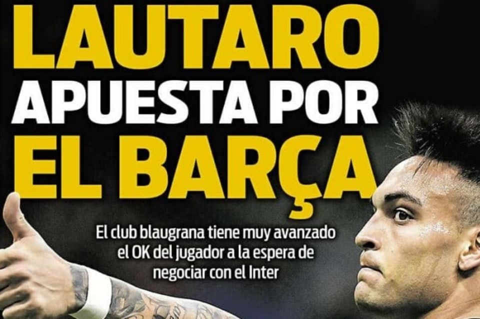 Lautaro Martínez, actualmente delantero de Inter de Milán Italia, es el elegido por Barcelona para reforzar la delantera del equipo de cara a la próxima temporada y este sábado fue tapa del diario Sport de España.