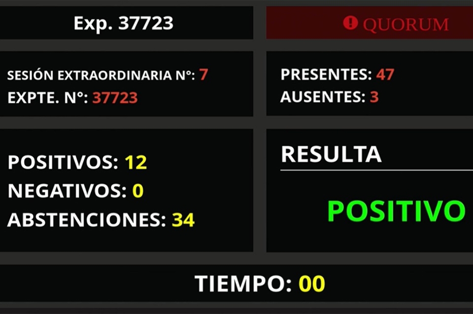 Los 12 votos positivos estuvieron representados por los bloques del Justicialismo, Juntos por el Cambio y Somos Vida y Familia.