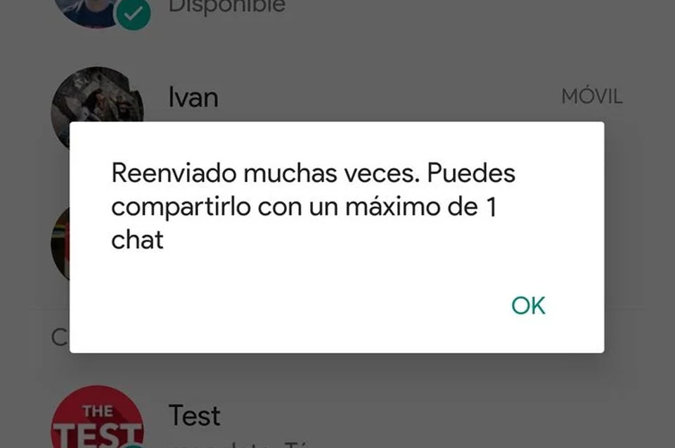 Hasta hoy era relativamente fácil reenviar una publicación hasta 256 personas en esa red con apenas un par de taps. Ahora, los mensajes que se identifiquen como "altamente reenviados" sólo se podrán mandar a una sola persona.
