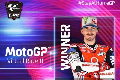 Alex Márquez, por su parte, no falló y afianzó un nuevo podio, seguido por su hermano Marc, que finalizó a menos de 3 segundos de Alex y a casi 23 de un Quartararo que cerró el Top 5 al superar a 'Petrux' en la última vuelta. El de Terni, de hecho, pasó algunos apuros para amarrar una sexta plaza que a punto estuvo de arrebatarle Rossi antes de irse al suelo en la última curva al entrar algo colado. El Top 10 lo completaron, por este orden, Nakagami, Pirro y Rabat. Emoción hasta el final en una segunda Carrera Virtual que volvió a amenizar a la comunidad de MotoGP™ a la espera de volver a ver a nuestras estrellas sobre el asfalto.