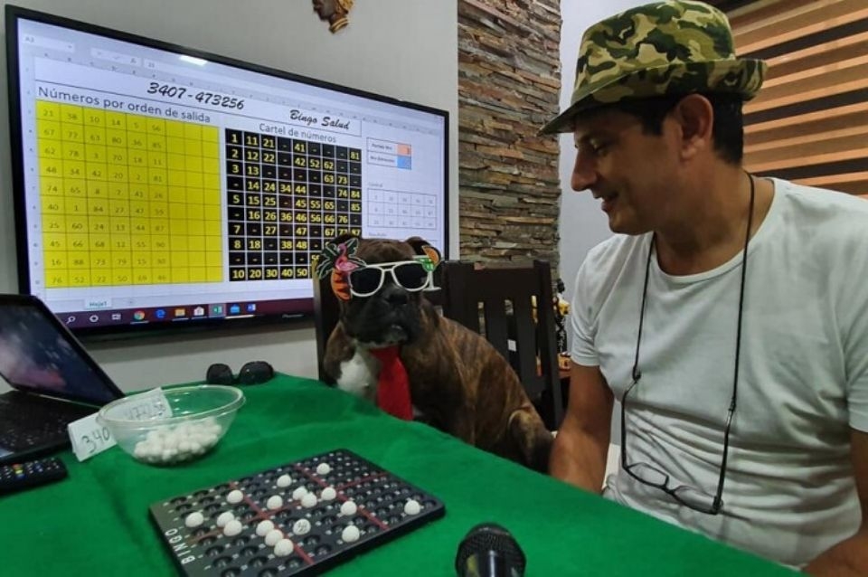 Se trata de un bingo virtual abierto a la comunidad donde Sergio va sacando bolillas con números por streaming en vivo y los vecinos que quieren jugar simplemente deden tener un cartón a mano –profesional o hecho a mano con quince números elegidos entre el 1 al 90.