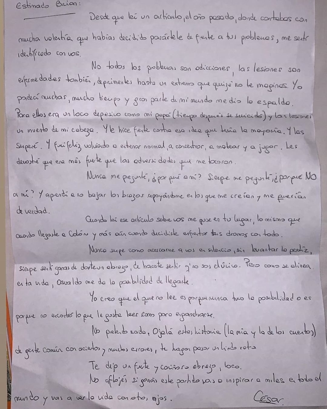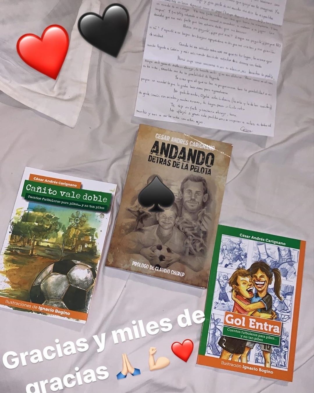 Además Brian recibió una carta junto a los tres libros que escribió el ex Colón y hoy comentarista de LT10 Cesar Carignano.
