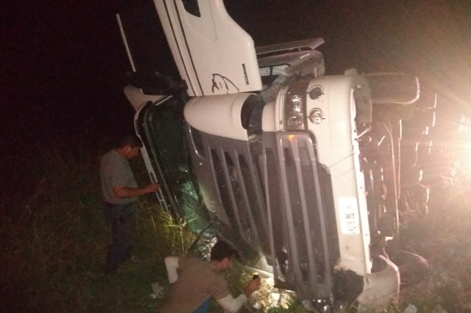En la noche de este lunes, un camión con acoplado que transitaba por la ruta nacional N°11 volcó en el kilómetro 504 de esa vía.
