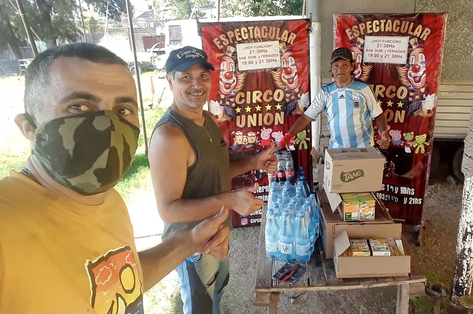 En un día la ayuda llegó. La solidaridad y la empatía mostraron su mejor cara y el Banco de Alimentos y el Centro Comercial santafesino acercaron en la tarde de hoy una tanda de insumos para las necesidades básicas del personal del circo.