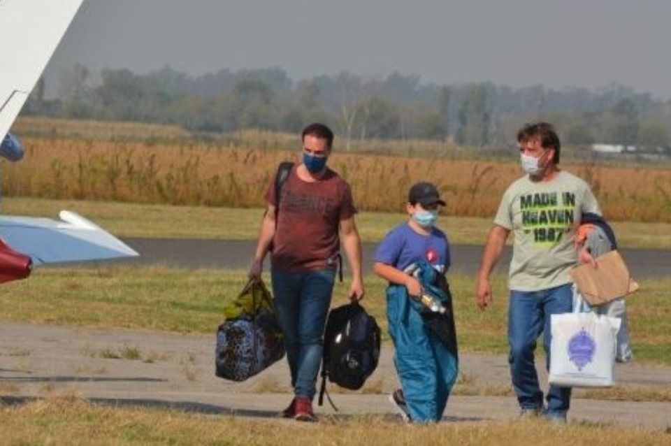 Luego de varios procedimientos, este viernes Daniel junto al senador Enrico partieron rumbo a Neuquén en el único vuelo autorizada en el día, luego que se comprobara que ni la madre, ni el niño tuvieron coronavirus.