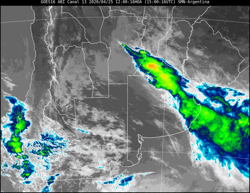 Según el informe, "sobre el área de cobertura se desarrollan lluvias y tormentas de variada intensidad. Se espera que algunas puedan ser localmente intensas estando acompañadas de ráfagas, fuerte actividad eléctrica y abundante caída de agua en cortos periodos. Las condiciones mejoraran temporariamente a partir de la noche de hoy sábado 25".