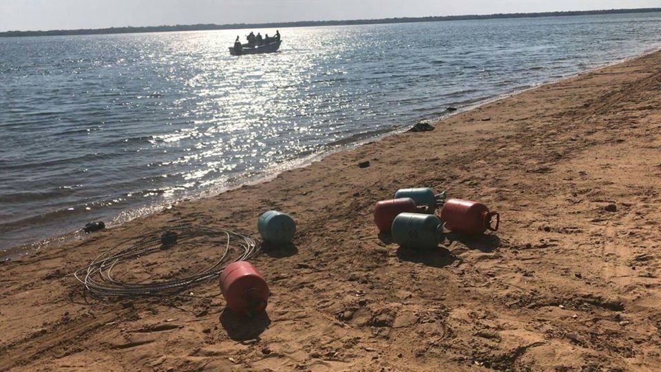 Debido a la bajante del río la embarcación quedó a sólo 30 centímetros de la superficie, por lo que, efectivos de Prefectura señalizaron la zona para evitar accidentes.