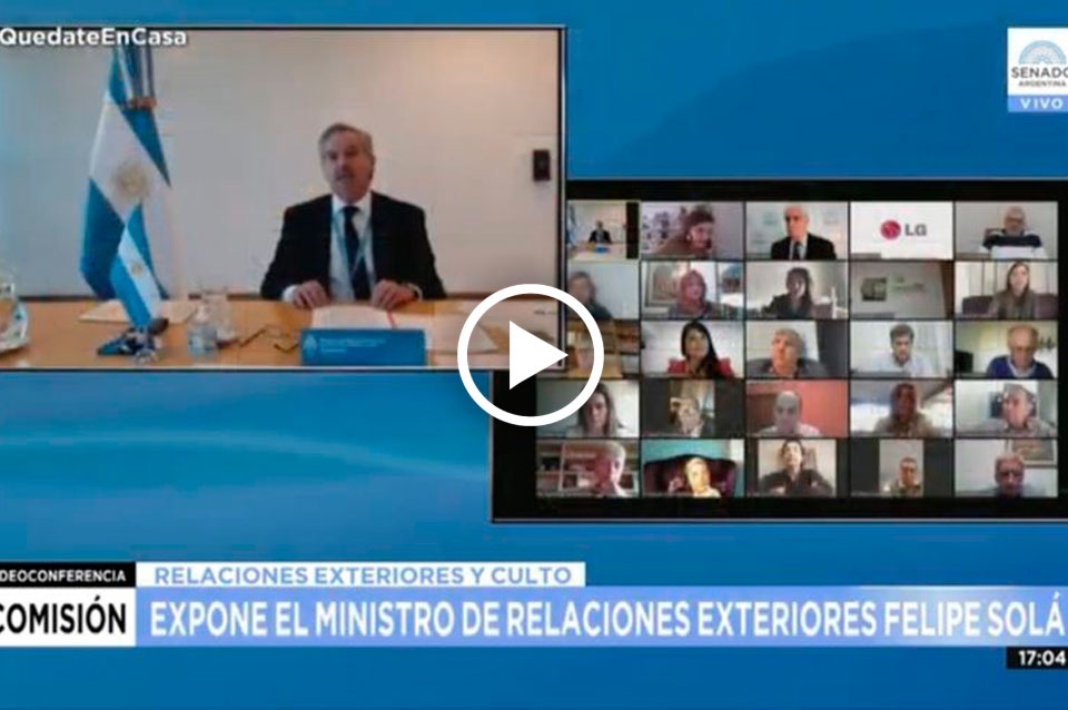 El polémico hecho ocurrió en el marco de la exposición que brindó el funcionario nacional el pasado miércoles por videoconferencia ante la Comisión de Relaciones Exteriores y Culto del Senado.