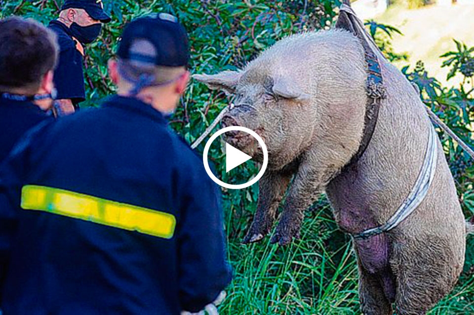 Luego de ser divisado y atacado a piedrazos por tres personas, la Policía arribó al lugar y comenzó un operativo para rescatarlo. Tras varios intentos, una persona logró enlazarlo con una soga y el cerdo quedó reducido.