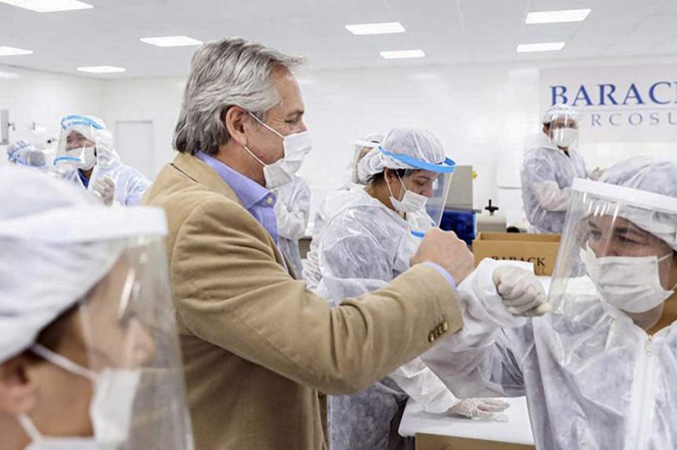 “Uno valora mucho los emprendimientos de este tipo para poder responder a la demanda que la salud estaba necesitando en estos momentos”, subrayó el mandatario en declaraciones a la TV Pública, al término de la actividad en la planta bonaerense.