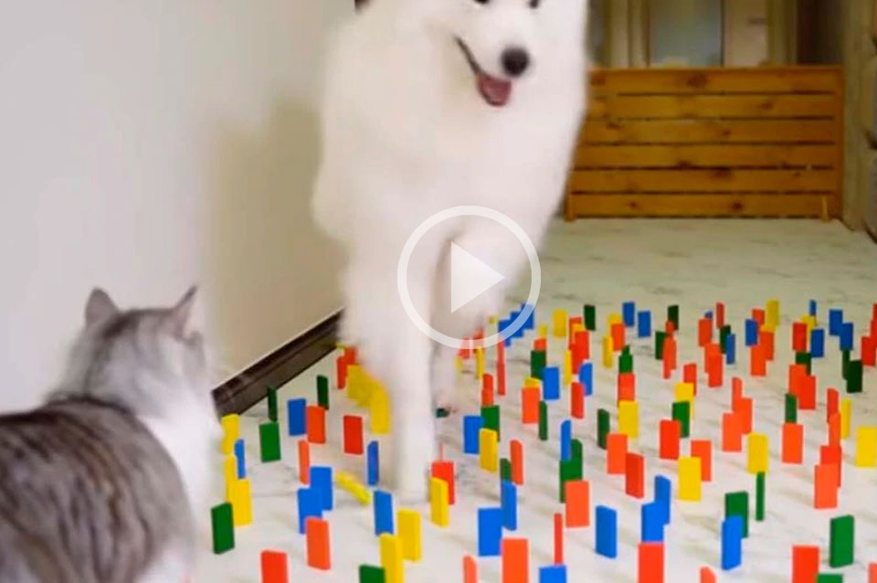 La segunda prueba fue más complicada, pues el nivel aumentó. Esta vez fueron 140 bloques de dominó que debían superar perro y gato. Nuevamente el minino se aventuró y dejó en claro que lo suyo es en serio: no derrumbó ninguna pieza y cruzó, otra vez, de extremo a extremo a el ‘campo minado’. El clip es viral en YouTube.
