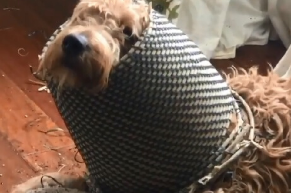 Berkeley es el perro que vive junto a su dueño en una casa de Estate Enighed, en Kansas, Estados Unidos. Su dueño comenzó a grabarla mientras esta Goldendoodle estaba acostada sobre una almohada al lado de la ventana. Todo parecía tranquilo y calmado, excepto que Berkeley había hecho un desastre intentaba disimularlo.