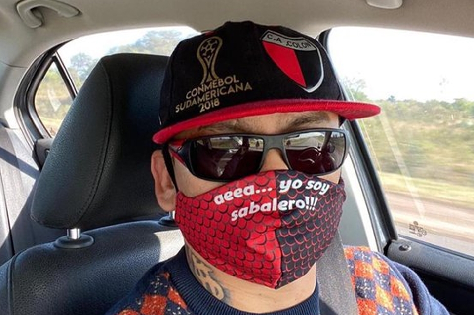 Sin embargo el ex boxeador volvió a las redes sociales con algo vinculado a Colón. Se sacó una foto con un barbijo particular, el mismo tiene impreso escamas rojas y negras y dice "Aeeea yo soy sabalero" acompañado también por una gorra con el escudo del club.