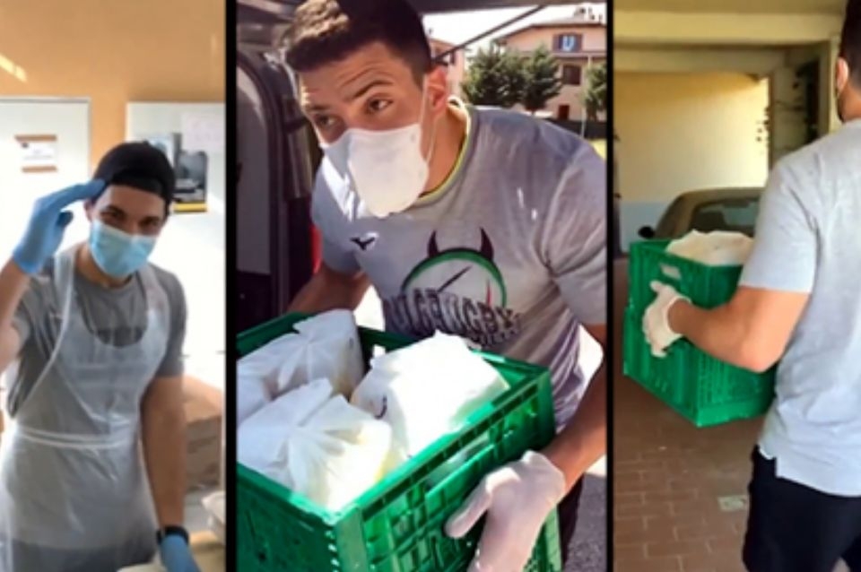 La Federación Italiana dio por concluida la temporada a raíz de la pandemia y los jugadores decidieron sumarse a las acciones solidarias que se realizan en la ciudad.
