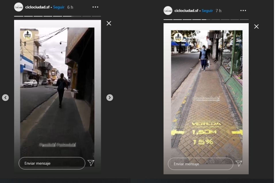 Captura IG: @ciclociudad.sf. Testeo de veredas.