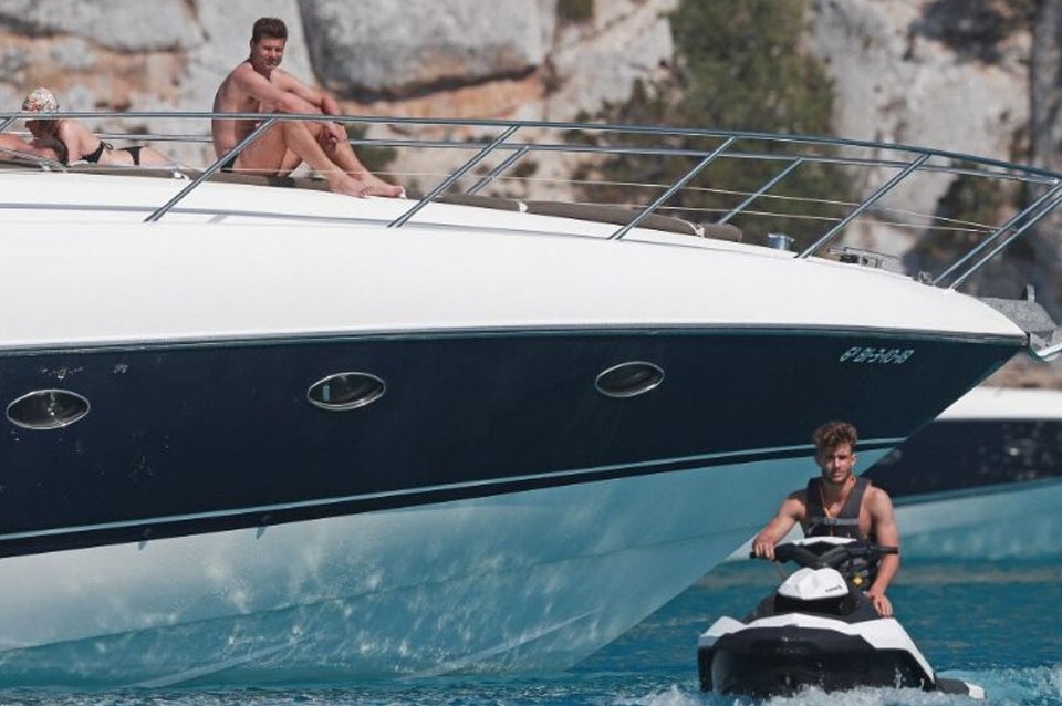 El ex defensor de la Selección argentina llevó a su esposa Karina y a sus hijos Sebastiano y Maurizio a Formentera. Allí se los pudo ver a bordo del Shaka Princess V58, cuyo alquiler semanal ronda los 23.000 euros. Tiene espacio para once pasajeros durante el día y seis para pasar la noche. El DT aprovechó sus grandes espacios para tomar sol, mientras que su hijo Maurizio pasó varias horas a bordo de una moto acuática.