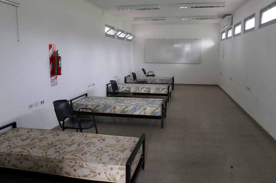 Las antiguas aulas del ISEP se reformaron para recibir entre tres y cinco pacientes por habitación, con los insumos necesarios y con personal capacitado para atender a los pacientes las 24 horas.