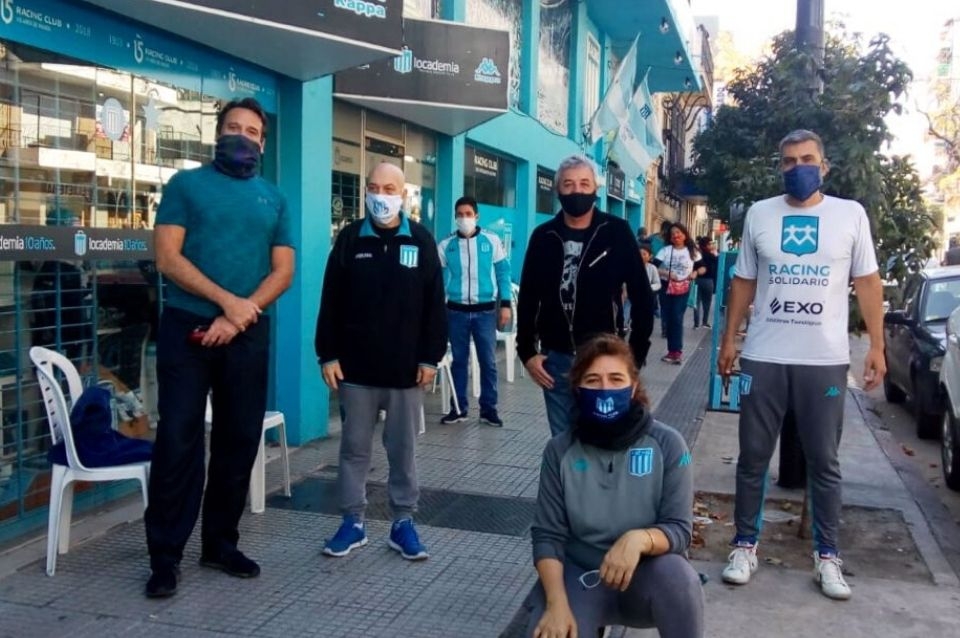 La gente de la sede de Racing, además de entregar bolsones de mercadería y ropa todos los días a los vecinos de Villa del Parque, está planificando repartir viandas solidarias al menos una vez por semana.