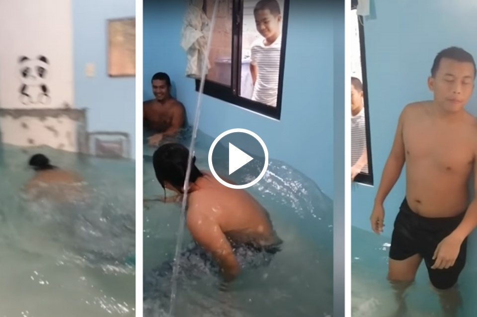 Tras meses de estar encerrados, y acalorados por las temperaturas extremas en Batangas, Filipinas, un grupo de jóvenes decidió convertir una de las habitaciones de una casa en una piscina gigante.