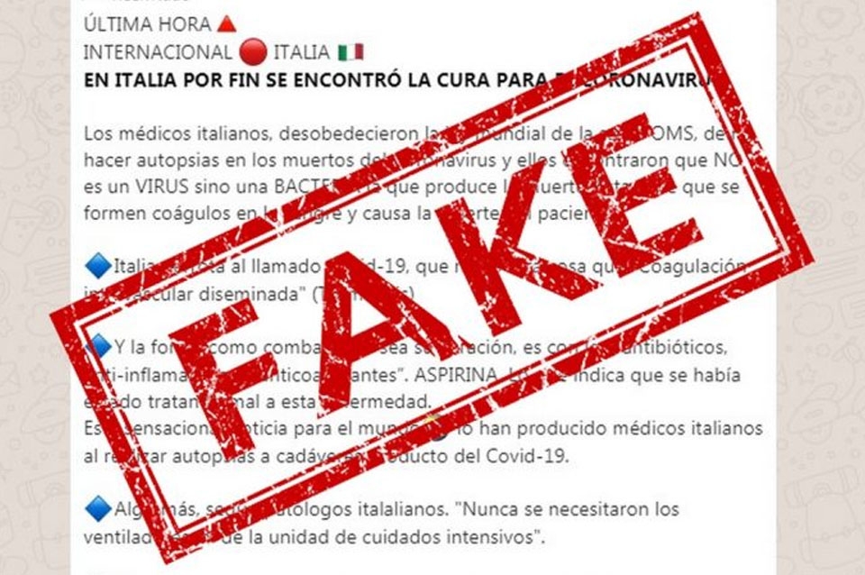 Una peligrosa y falsa cadena de WhatsApp circuló con velocidad por los celulares de los argentinos. La misma asegura que “en Italia por fin se encontró la cura para el coronavirus” y hasta llega a recomendar el consumo de una serie de medicamentos para combatir el virus, que ya contagió a casi cinco millones de personas en el mundo.