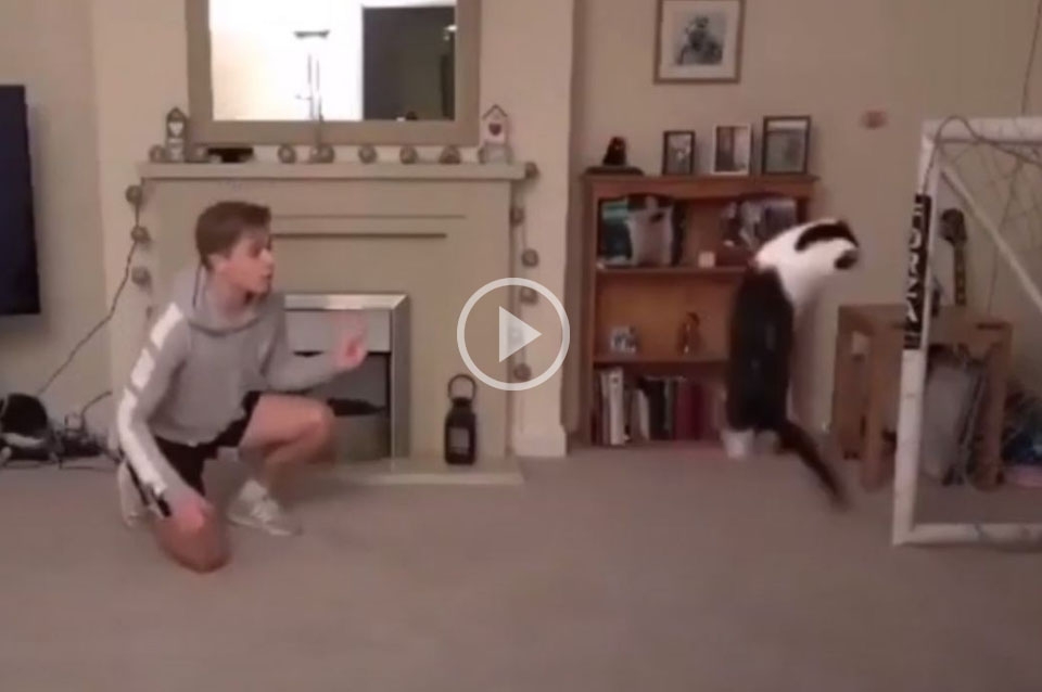 Chris Dixon, un vloguero británico especializado en contenidos relacionados con el fútbol, compartió en su cuenta de Twitter un video en el que muestra a su gato atajando penales de una manera espectacular.