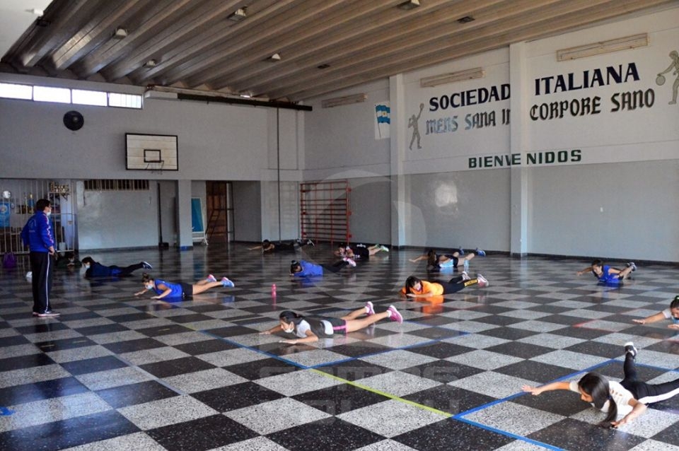 Los entrenamientos, en general mixtos para aprovechar los turnos, duran 45 minutos, respetando la distancia social y los protocolos de higiene y salud (el barbijo lo usan hasta comenzar la actividad y al terminar).