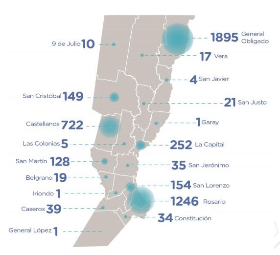 El departamento con más cantidad de personas enfermas de dengue es General Obligado, en el norte de la provincia, con 1.895. Le sigue Rosario, al sur, con 1.246 casos. Luego se sitúa Castellanos (en el centro), con 722.