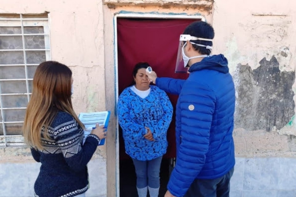 En esa populosa barriada, agentes sanitarios llevan adelante un relevamiento casa por casa, destinado a la búsqueda focalizada y activa de casos de coronavirus.