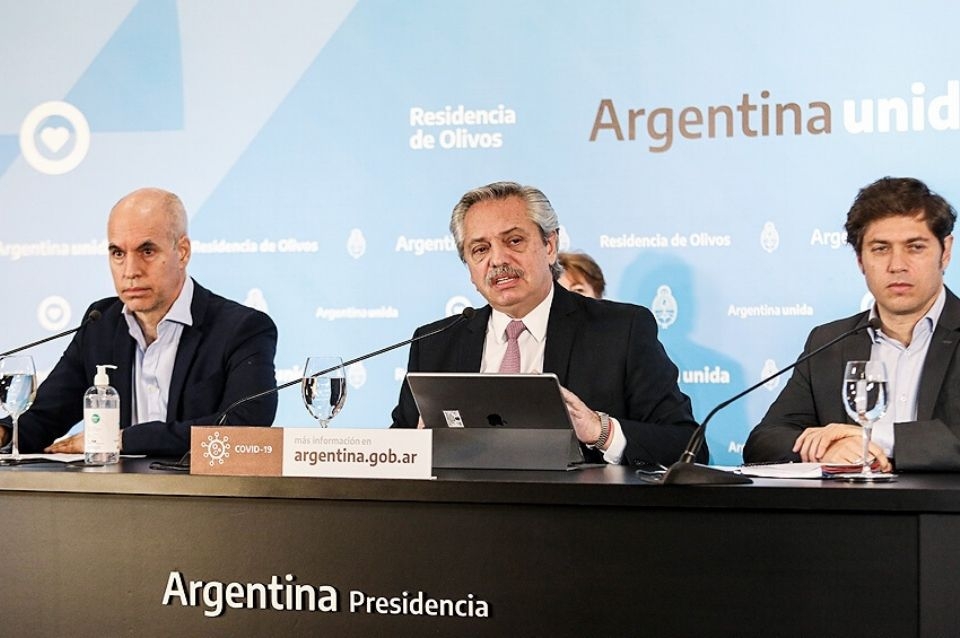 "Vamos a dar un paso más pero tenemos que entender que no superamos el problema", dijo Fernández. "Vamos a hacer una diferenciación, vamos a sostener el aislamiento en todos los lugares donde haya circulación comunitaria del virus. Allí la situación va a seguir igual que ahora y cualquier esquema de apertura se hará con los cuidados que exigimos", dijo.