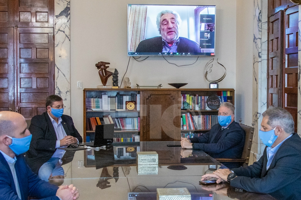 El convenio fue rubricado en un encuentro virtual que mantuvieron este jueves el rector de la UNL, Enrique Mammarella, y su par de Río Negro, Juan Carlos Del Bello. La autoridad santafesina desarrolló el acto en su despacho ubicado en la Manzana Histórica y fue acompañado por la secretaria de Extensión Social y Cultural, Lucila Reyna; el secretario de Vinculación y Transferencia Tecnológica, Javier Lottersberger; el decano de la Facultad de Ingeniería Química (FIQ-UNL), Adrián Bonivardi; y el director del Centro para la Transferencia de los Resultados de la Investigación (CETRI Litoral), Christián Nemichenitzer. Por parte de la UNRN, participaron de manera virtual la directora general de Investigación, Desarrollo y Transferencia de Tecnología, Carolina García Sartor; la directora de Proyectos de Investigación y Becarios, María José Ferrero Ibargüen.