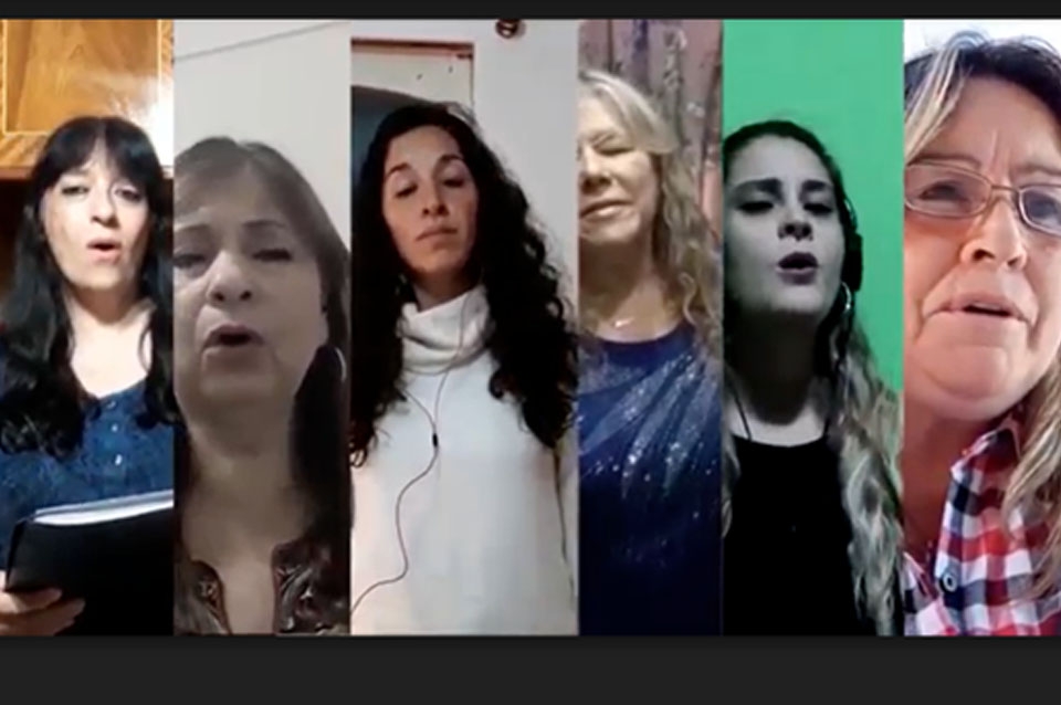 El registro grabado por cada uno de los 16 cantantes desde su casa fue un gran desafío. Para eso debieron encontrar el mejor lugar y horario para evitar sonidos del ambiente que interfirieran, teniendo en cuenta también que cada celular capta de forma distinta la voz y el entorno. “Hubo un gran ida y vuelta al principio, buscando un sonido lo más nítido posible dentro de estas variables”, explicó el director. El paso siguiente estuvo a su cargo y fue la edición de todas las tomas de sonido, donde buscó la coordinación entre las voces y quitar algún ruido del ambiente, a partir de conocimientos de edición con los que contaba y otros que necesitó incorporar.