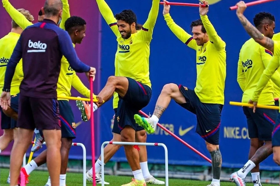 Messi no había podido ser parte del ensayo futbolístico del último sábado en el regreso del equipo al Camp Nou, luego de la suspensión por la pandemia del coronavirus.
