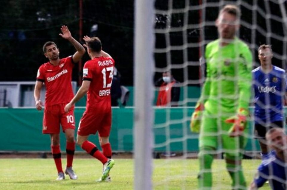 El francés Moussa Diaby (PT 11m) abrió el marcador en el estadio Hermann-Neuberger-Stadion de Sarre, sin público por la pandemia de coronavirus, y el alemán Karim Bellarabi (ST 13m) cerró la goleada.