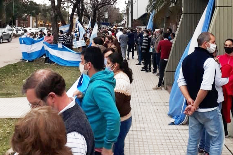 Este martes, empleados de la empresa Vicentin y vecinos de Avellaneda y Reconquista se manifestaron frente a las oficinas administrativas de la firma.