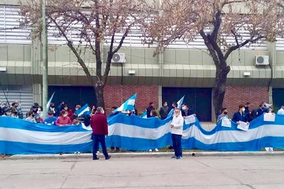 #Ahora vecinos de Reconquista y Avellaneda se manifiestan contra l #ExpropiacionVicentin frente a las oficinas administrativas de la empresa