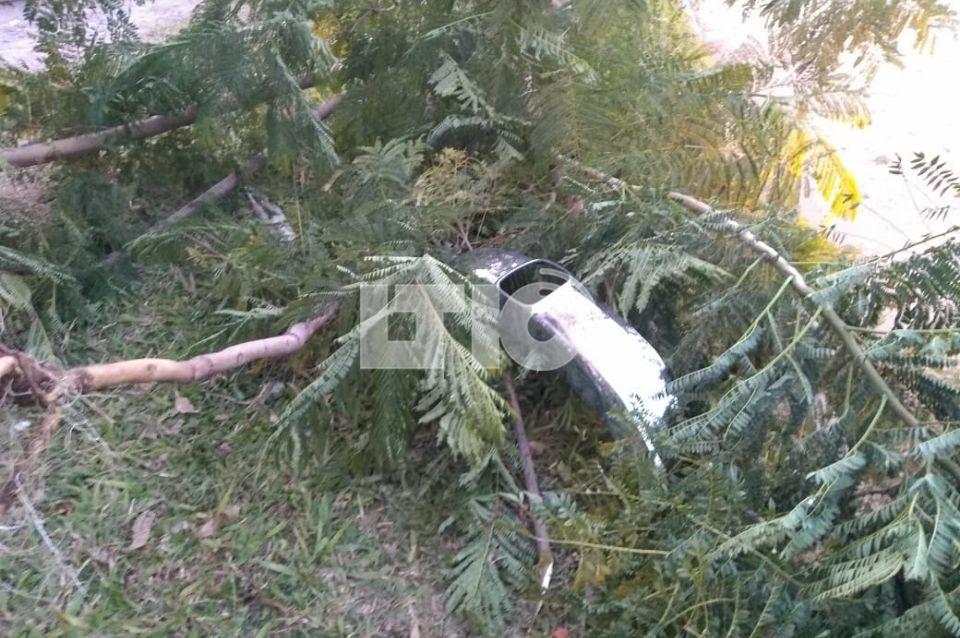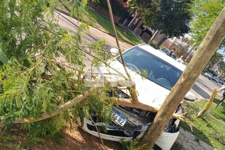 Pero la secuencia no terminó ahí, los delincuentes tomaron Castelli aparentemente en contramano, manejaron dos cuadras y al llegar a Estanislao Zevallos al 400 perdieron el control del vehículo. El auto zigzagueó y terminó golpeando fuertemente contra un árbol que quedó partido a la mitad y un poste de luz.