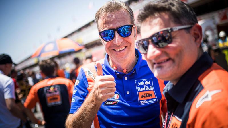 Los responsables de ambos equipos de KTM, Mike Leitner y Hervé Poncharal, valoran el progreso que el constructor austríaco persigue este año