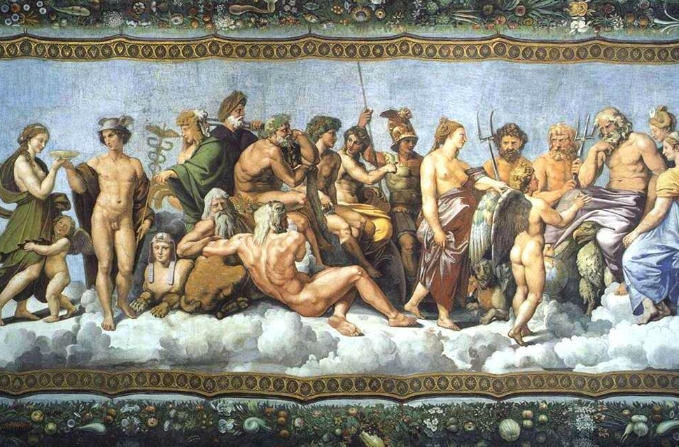 Si bien Rafael pintó frescos en numerosas habitaciones del Palacio es esta en particular una de las más destacadas, encargada especialmente por el banquero para celebrar allí su matrimonio con Francesca Ordeaschi, con la intención de crear un entorno lo suficientemente grandioso como para abrumar a los invitados a su boda.