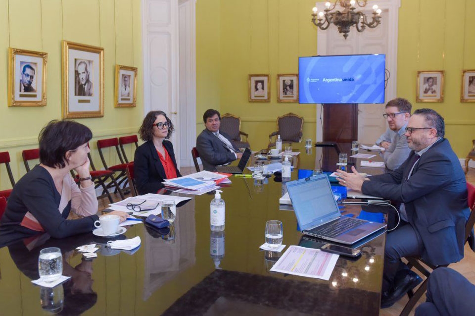 La reunión fue encabezada por el jefe de Gabinete, Santiago Cafiero, y participaron la vicejefa de Gabinete, Cecilia Todesca Bocco, y los ministros de Economía, Martín Guzmán; Trabajo, Claudio Moroni; y Desarrollo Productivo, Matías Kulfas.