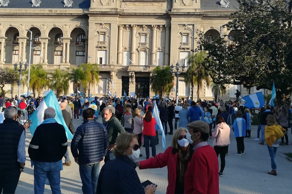 Un centenar de vecinos de La Plata se manifestaron en la capital bonaerense en contra la intervención de la cerealera y reclamaron por la liberación de actividades en el marco del aislamiento social preventivo y obligatorio dispuesto por el gobierno nacional en el contexto de pandemia de coronavirus.