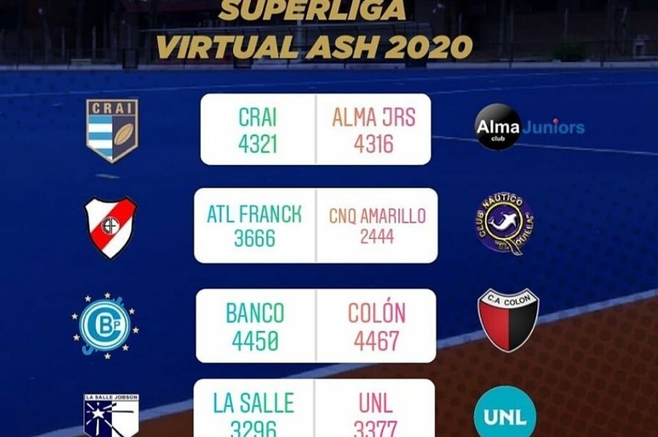 Se cerraron los Cuartos de Final de la Superliga Virtual que organiza la Asociación Santafesina. Los partidos se publican a través de encuestas en las historias de la red social Instagram de la cuenta que posee la ASH (@ashprensa). El equipo que más votos recibió, tras los cruces de ida y vuelta, resulta el ganador para acceder a la siguiente fase. CRAI, Atlético Franck, Colón y la Universidad Nacional del Litoral accedieron entre los cuatro mejores del certamen.