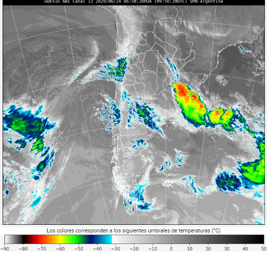 Mapa satelital de la República Argentina este miércoles (Fuente: SMN)