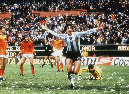 - El 25/6 de 1978, la Selección ARGENTINA se consagró campeona del mundo por primera vez, al derrotar a Holanda por 3 a 1, en la final disputada en la cancha de River. Mario Kempes (terminó como goleador del certamen) -2- y Daniel Bertoni marcaron para el equipo de César Luis Menotti, mientras que Naninga había igualado para los europeos. Los 90 minutos reglamentarios terminaron con empate 1-1 y la historia se definió en el tiempo suplementario.