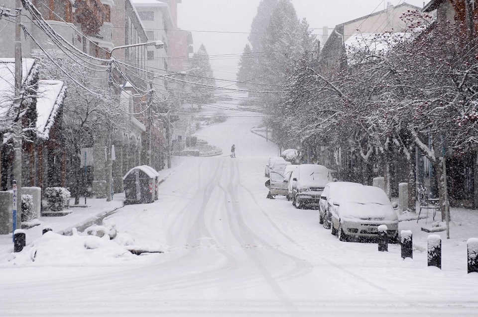 Intensa nevada en una Bariloche sin turistas