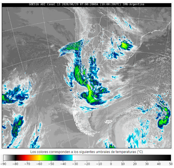 Mapa satelital del país este lunes (Fuente: SMN)