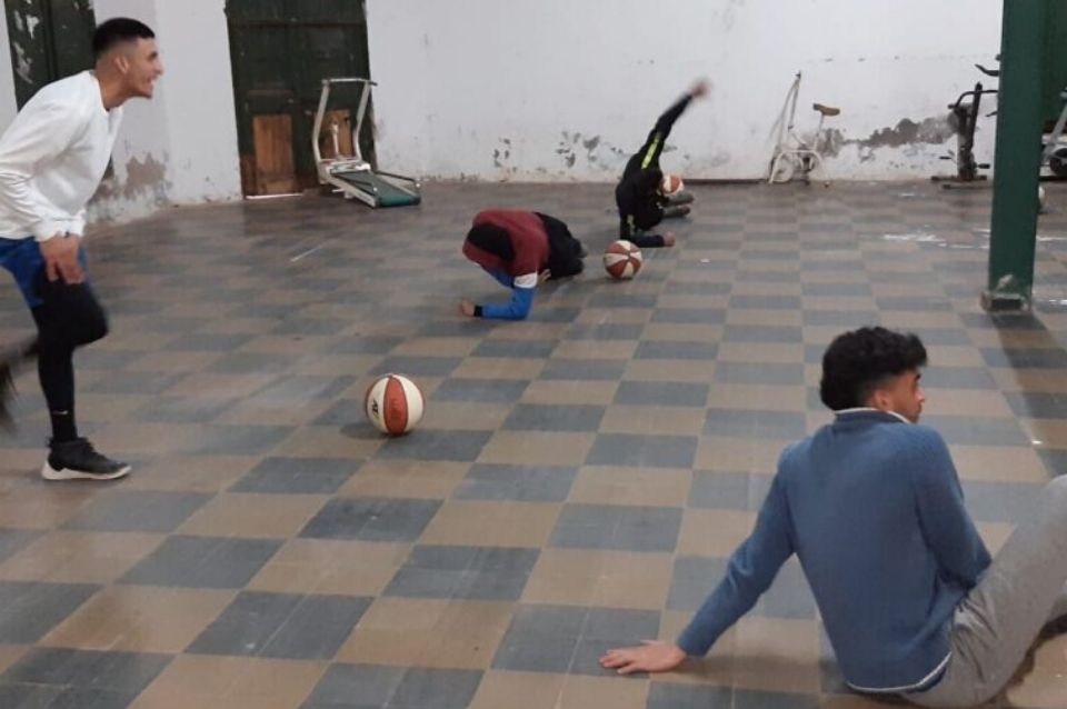 Si bien los jugadores debieron sortear las bajas temperaturas para pisar nuevamente una cancha de básquet, también aprovecharon el espacio de su SUM para llevar adelante la rutina.