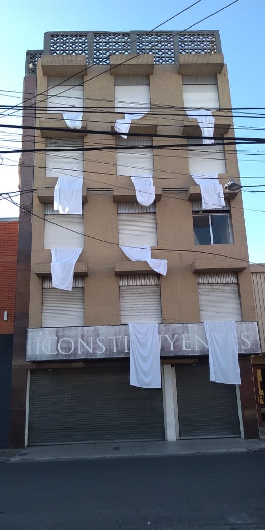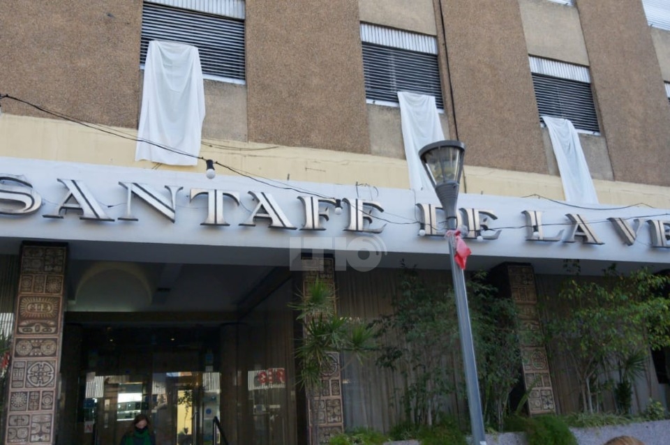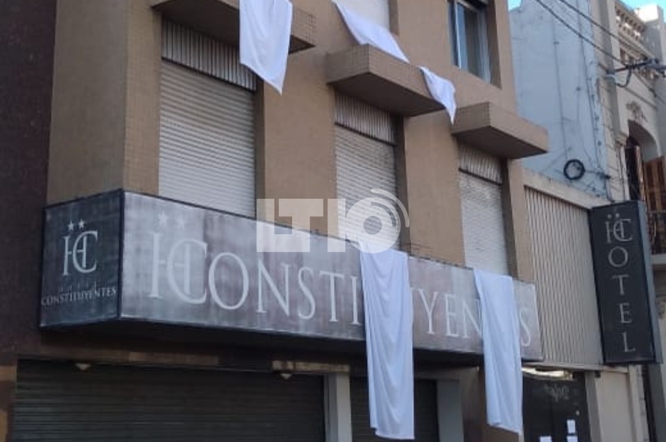 Este jueves se observa en la ciudad una particular modalidad de protesta en los hoteles: sábanas blancas colgadas en las ventanas.