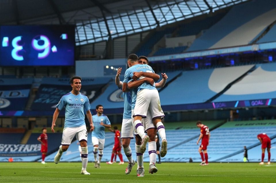 Manchester City aplastó este jueves al flamante campeón, Liverpool, por 4 a 0 como local, en el cierre de la 32da fecha de la Premier League de Inglaterra, a puertas cerradas por el coronavirus.