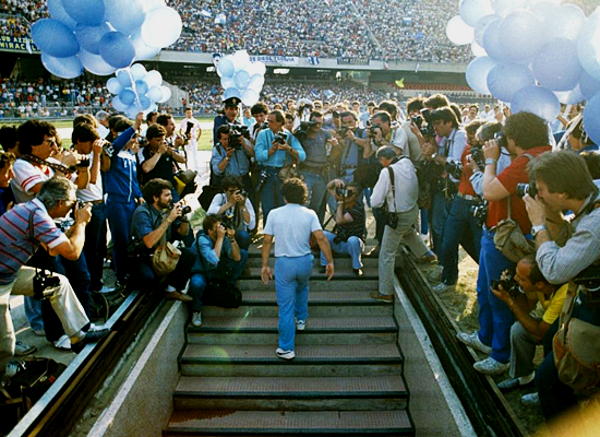 - El 5/7 de 1984, Diego Armando MARADONA fue presentado como nuevo jugador del Napoli italiano. Llegó proveniente del Barcelona y 80 mil personas se hicieron presentes para recibirlo en el estadio San Paolo. Nacía la gran leyenda napolitana. Con el "Diez", el equipo del sur ganó dos Scudetto, una Copa Italia, una Supercopa italiana y una Copa de la UEFA.
