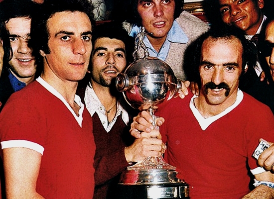 - El 8/7 de 1943, en Montevideo, Uruguay, nació un caudillo de Independiente, Ricardo Elbio PAVONI, el "Chivo" -en la foto, junto al "Pato" Pastoriza-. Fue un marcador de punta con mucha personalidad, capitán del "Rojo" en su mejor época. Con el equipo de Avellaneda ganó cuatro Copas Libertadores consecutivas (de la edición de 1972 hasta la del '75) y, en 423 partidos oficiales, anotó 57 goles.